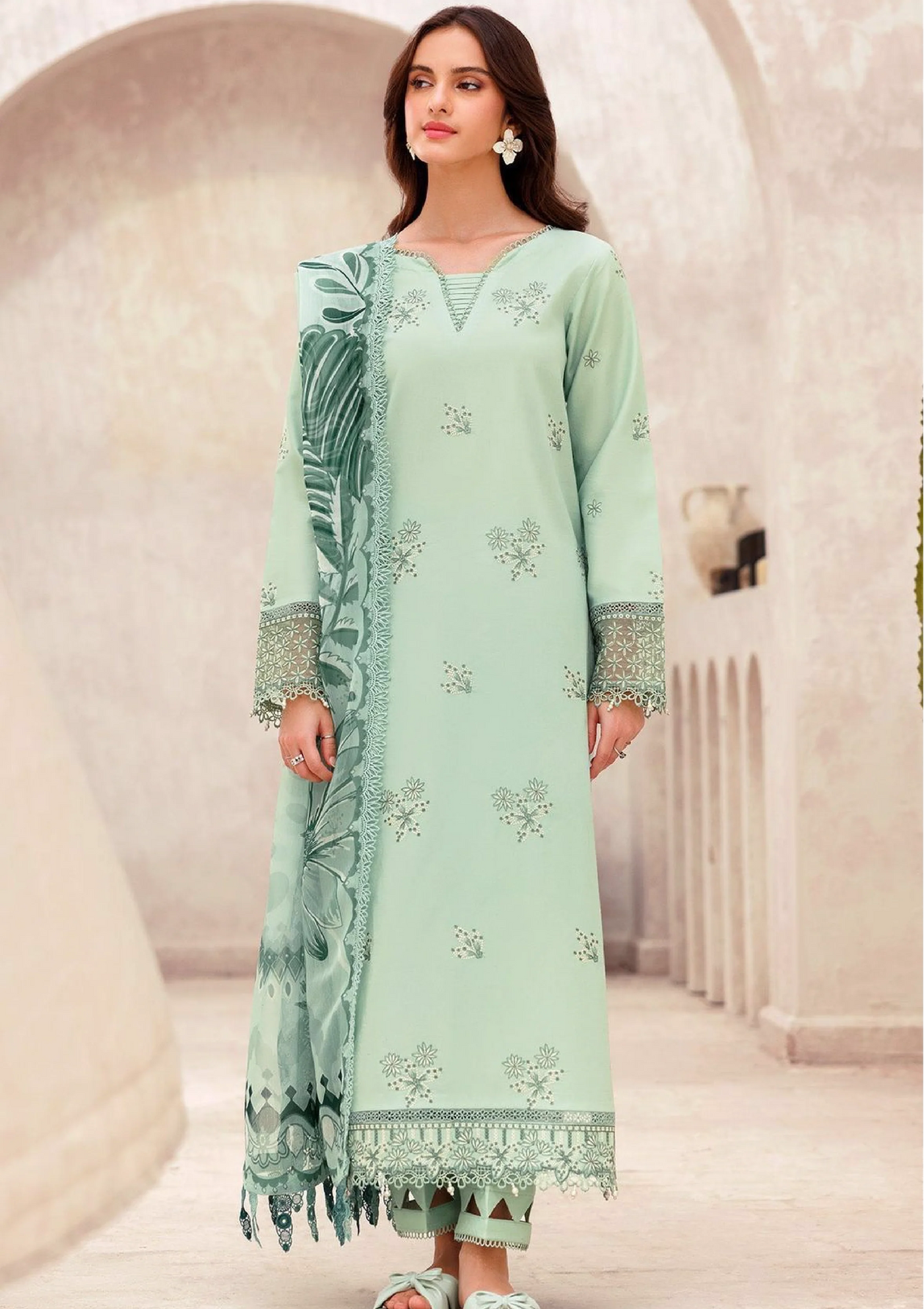 ✔ Front Full Heavy Chikenkari Embroidered ✔ Daman Heavy Embroidered cutwork patch✔ Sleeves Heavy Embroidered✔ Digital Print Voil Dupata✔ Trouser plain ✔ With Catalog & Bag