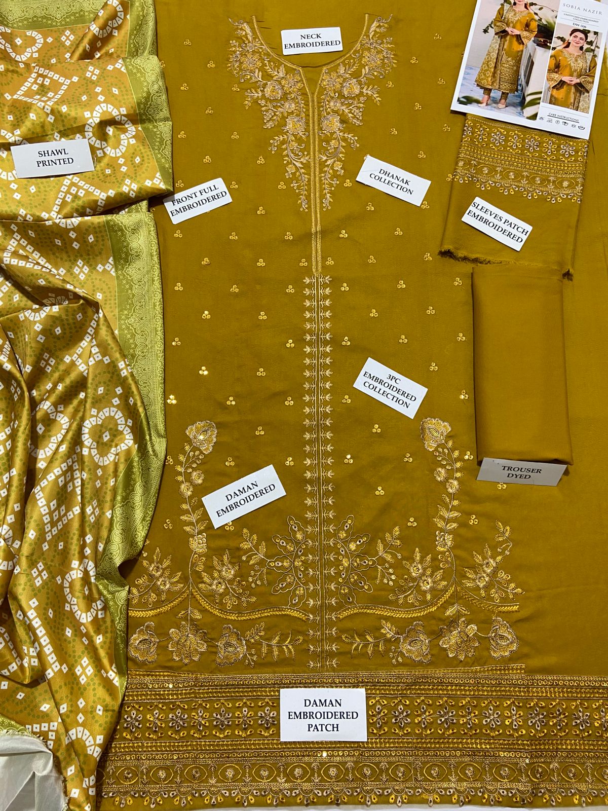 ✔ Front Full Heavy Emb✔ Sleeves Heavy Embroidered✔ Voil Diamond Printed dupatta✔ Trouser plain with emb patch✔ Back side Emb patch✔ With Catalog & Bag