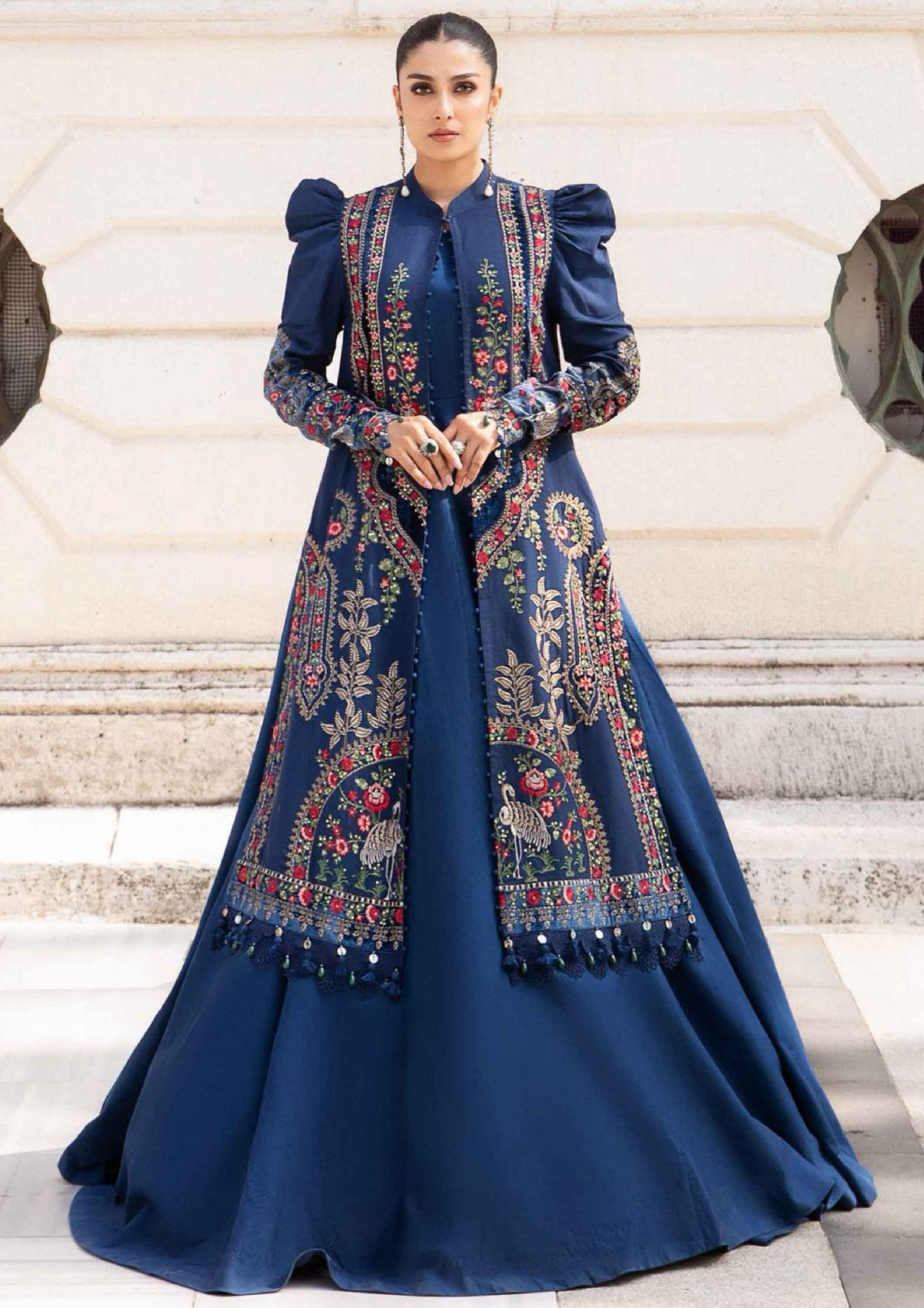 ✔️ Front Full Heavy Sequence Embroidered✔️ Neck Embroidered ✔️ Sleeves Heavy Embroidered✔️ Dhanak Emb shawl with Pallu✔️ Daman Embroidery patch✔️ Trouser Plain ✔️ With Catalog & Bag