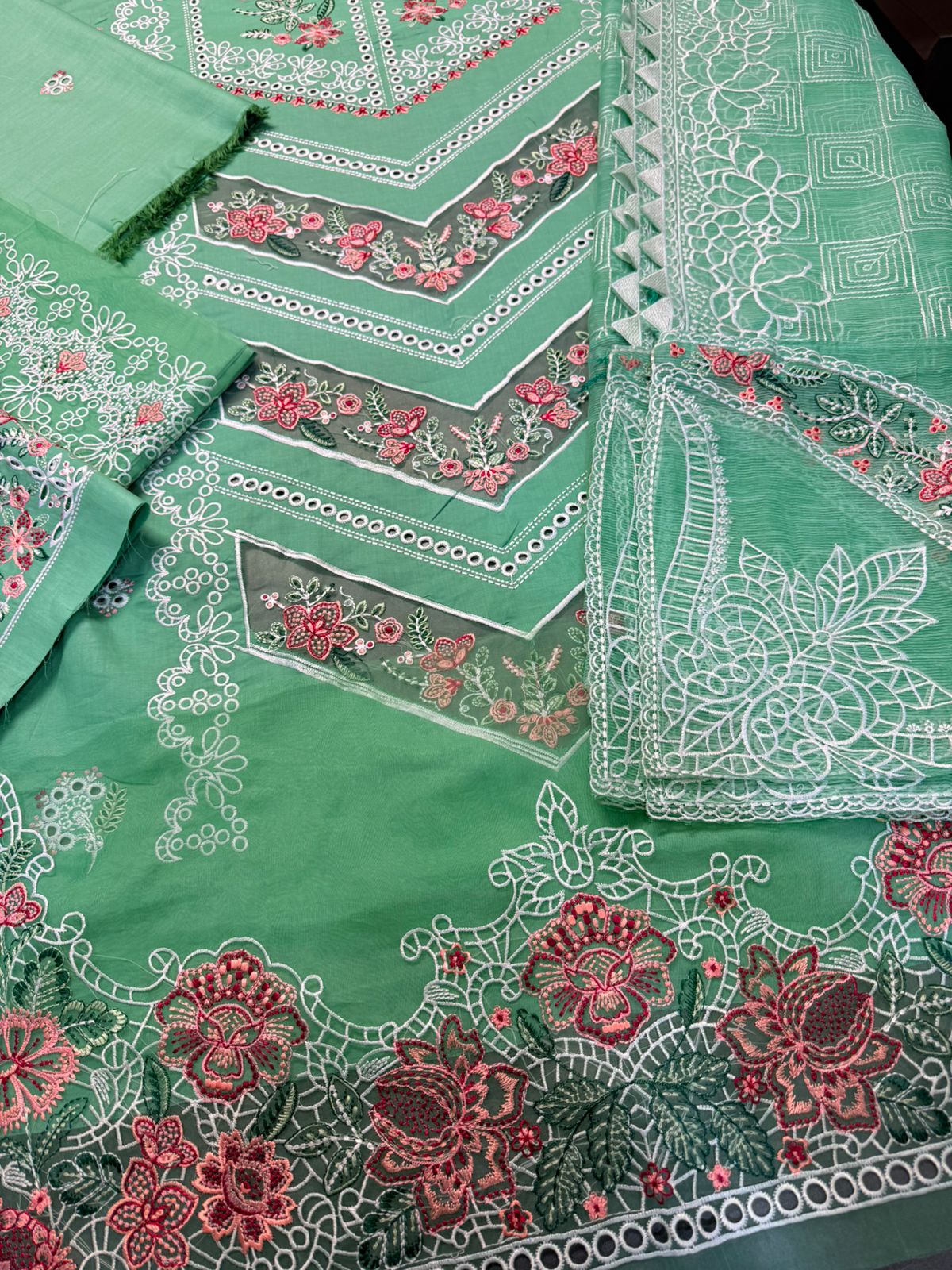 CRIMSON 3pc Summer Casual Collection🌻LAWN AIR JET BEST WORLD CLASS QUALITY STUFF🌻front Full Boring+ applic Heavy Emb🌻cutwork 4 border emb khaadi net dupata🌻 Seleeves 36 inch Emb 🌻Dyed trouser 🌻 Back emb🌻 Damn+border+trouser patch